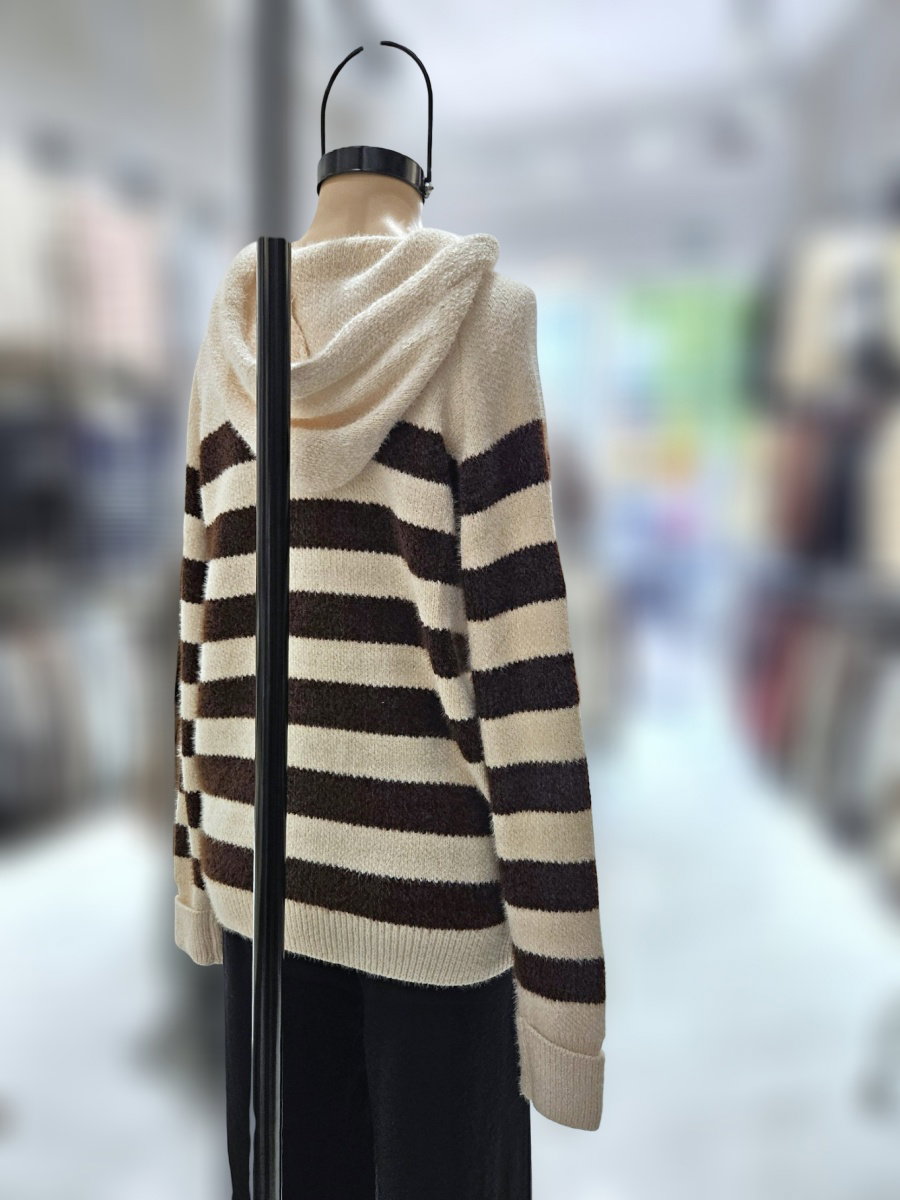 ED83-3 Saco rayado capucha bolsillo cuadrado